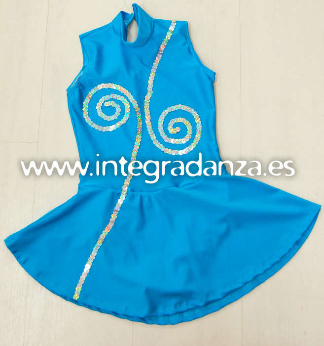 Maillot Gimnasia Rítmica, infantil decorado. Diseño elaborado por el cliente. Lycra, lentejuela.