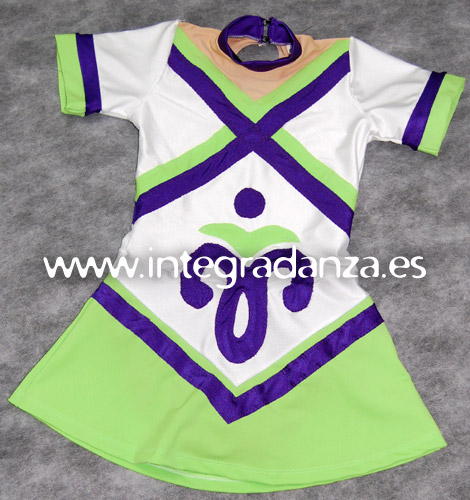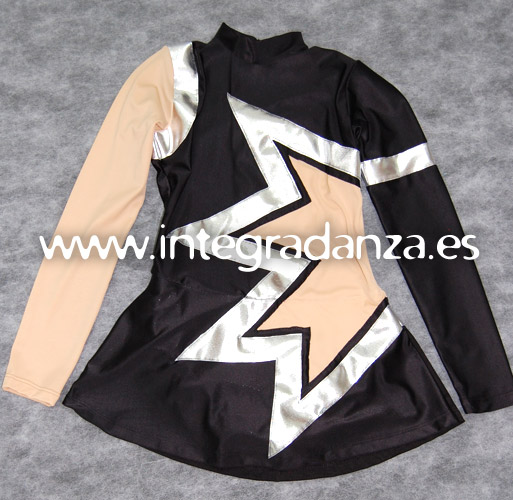 Maillot de competición Gimnasia Deportiva. Elaborado con apliques superpuestos de Lycra de fantasía.