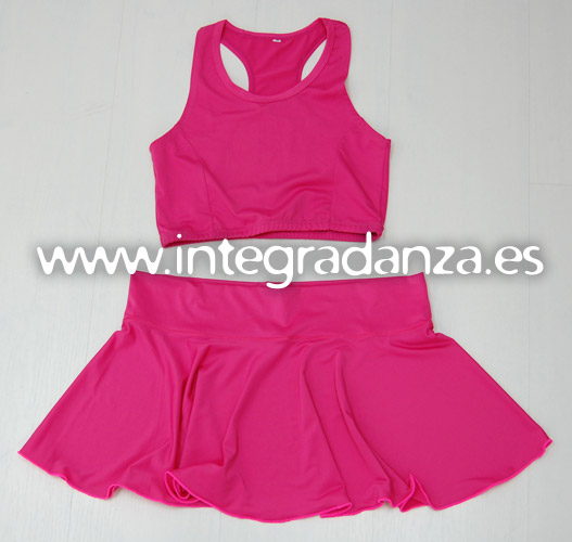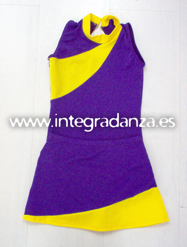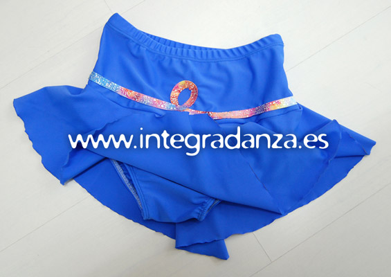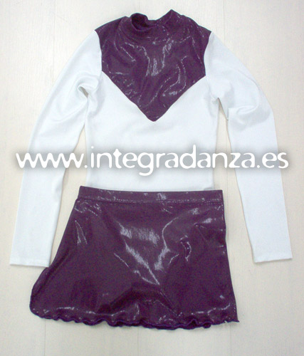 Conjunto de maillot con falda tipo pañuelo para exibición. Lycra metalizada.